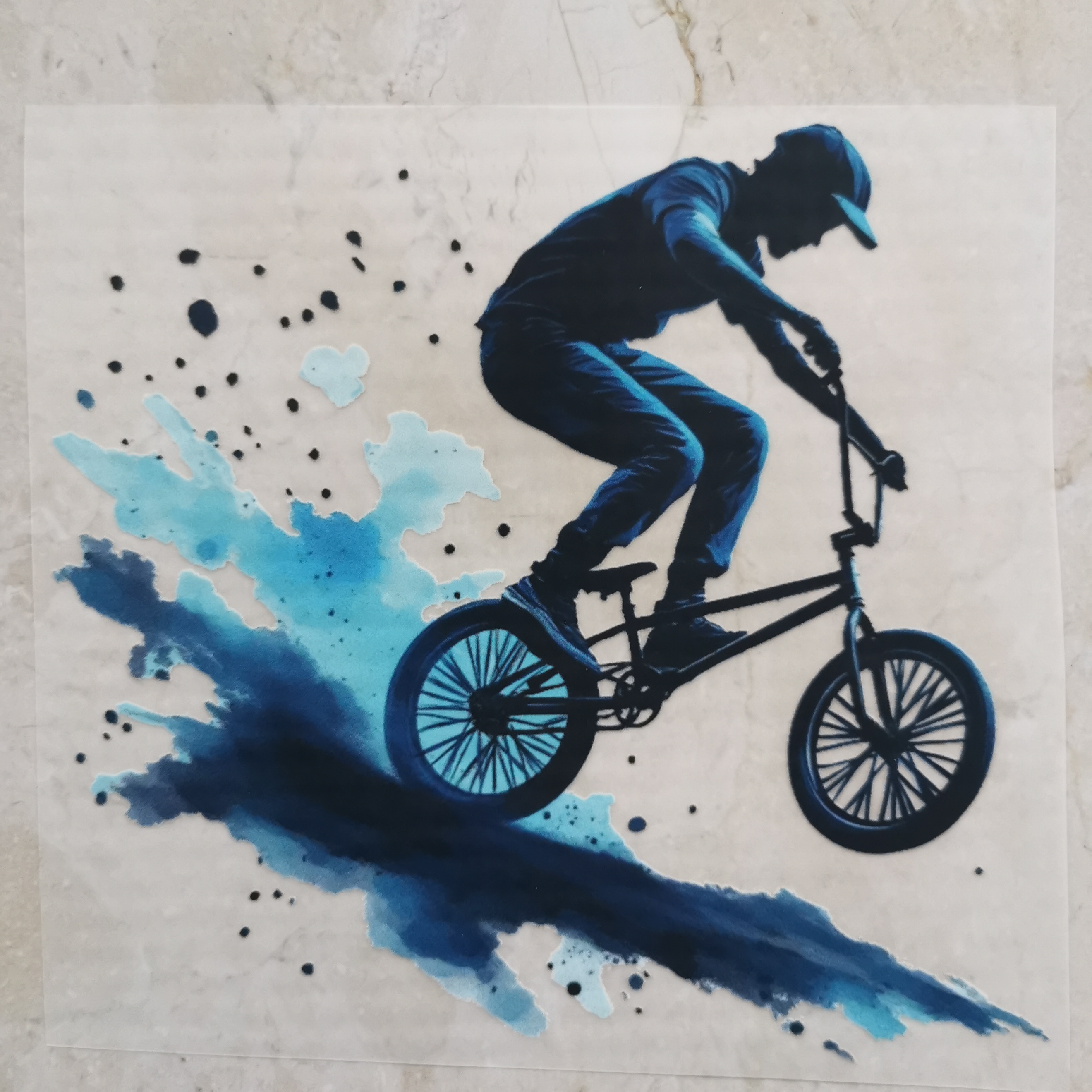 Bügelbild Biker blau
