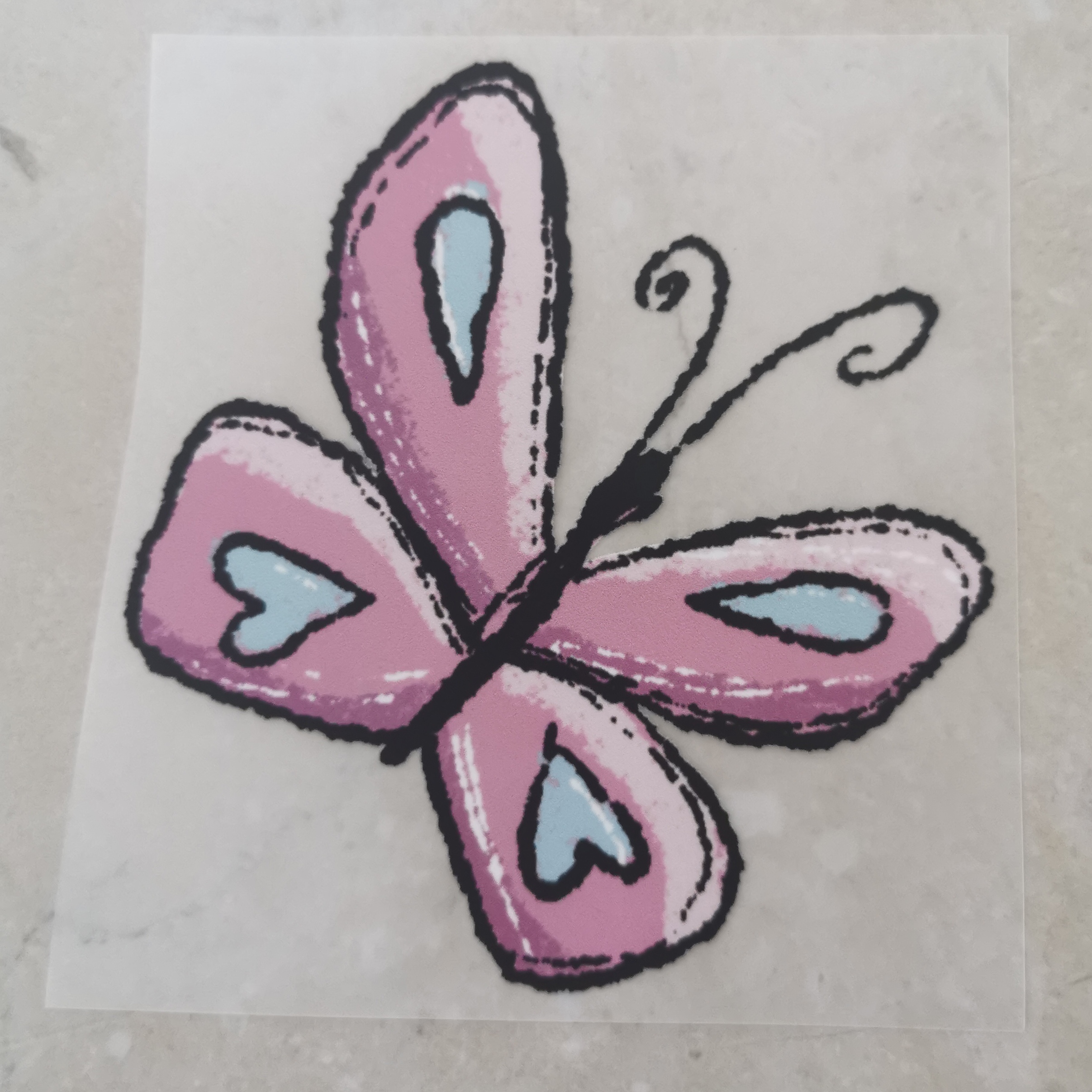 Bügelbild Blumenliebe Schmetterling rosa