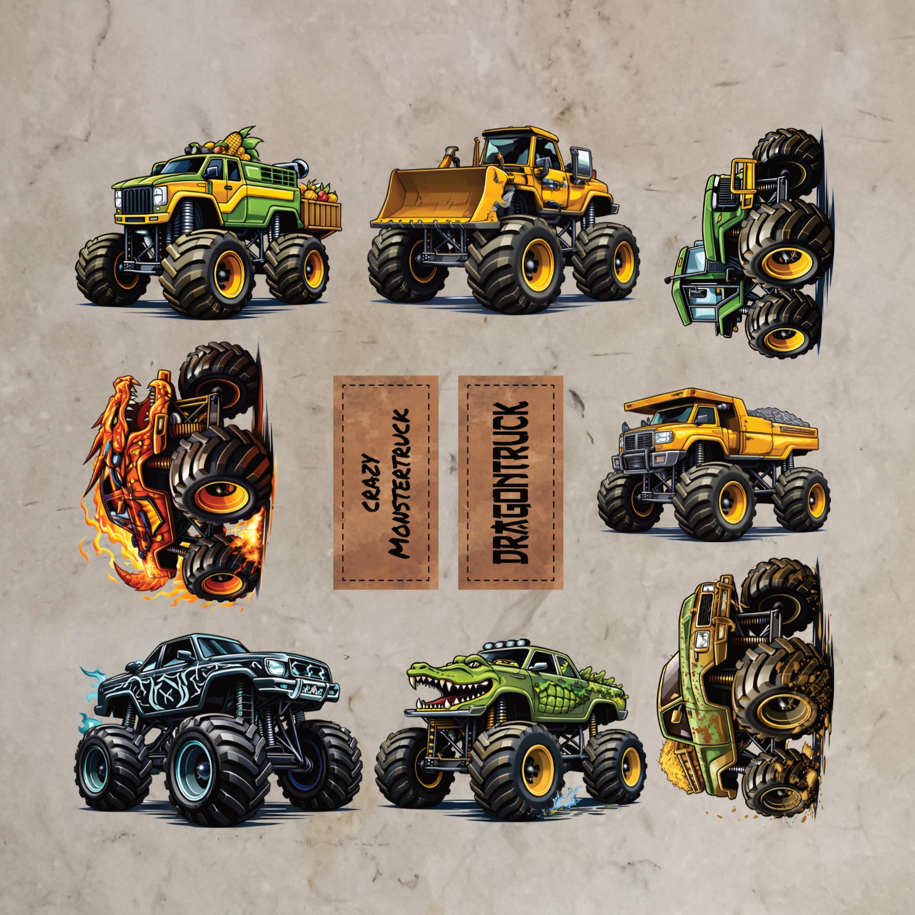 Bügelbild-Bundle crazy Monstertrucks