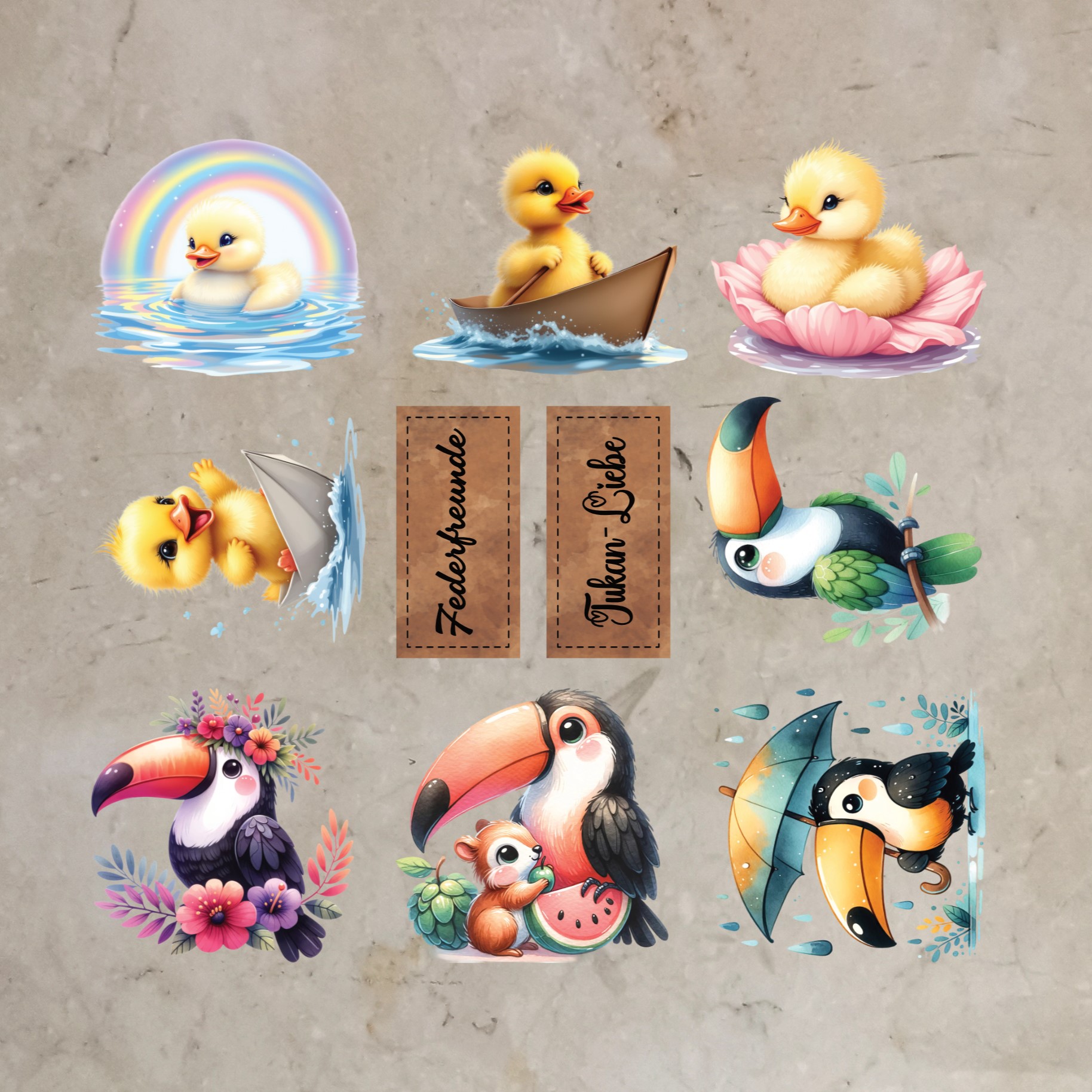 Bügelbild-Bundle Federfreunde