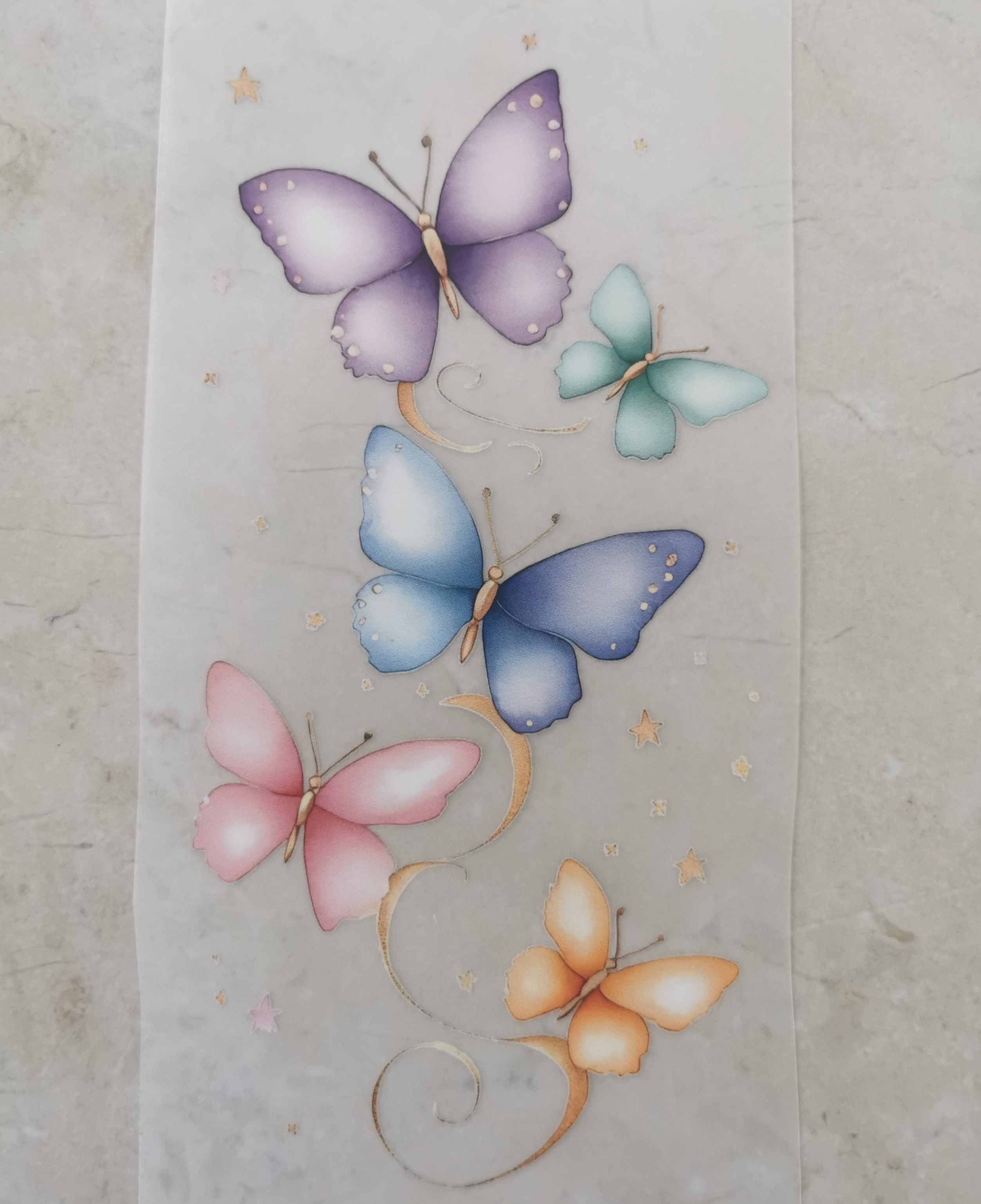Neu gibt es die Variante der UV-Aufkleber. Diese sind für harte Untergründe geeignet und werden ohne Aufbügeln angebracht. Als geeignete Materialien gelten Glas, Porzellan, Kunststoff, Holz, Pappe, Metall, Leder, Stein und einige Stoffarten. Nicht geeignet sind bewegliche Materialien. Sie sind wetterbeständig und UV-unempfindlich, jedoch nicht Spülmaschinenfest oder Lebensmitteltauglich.