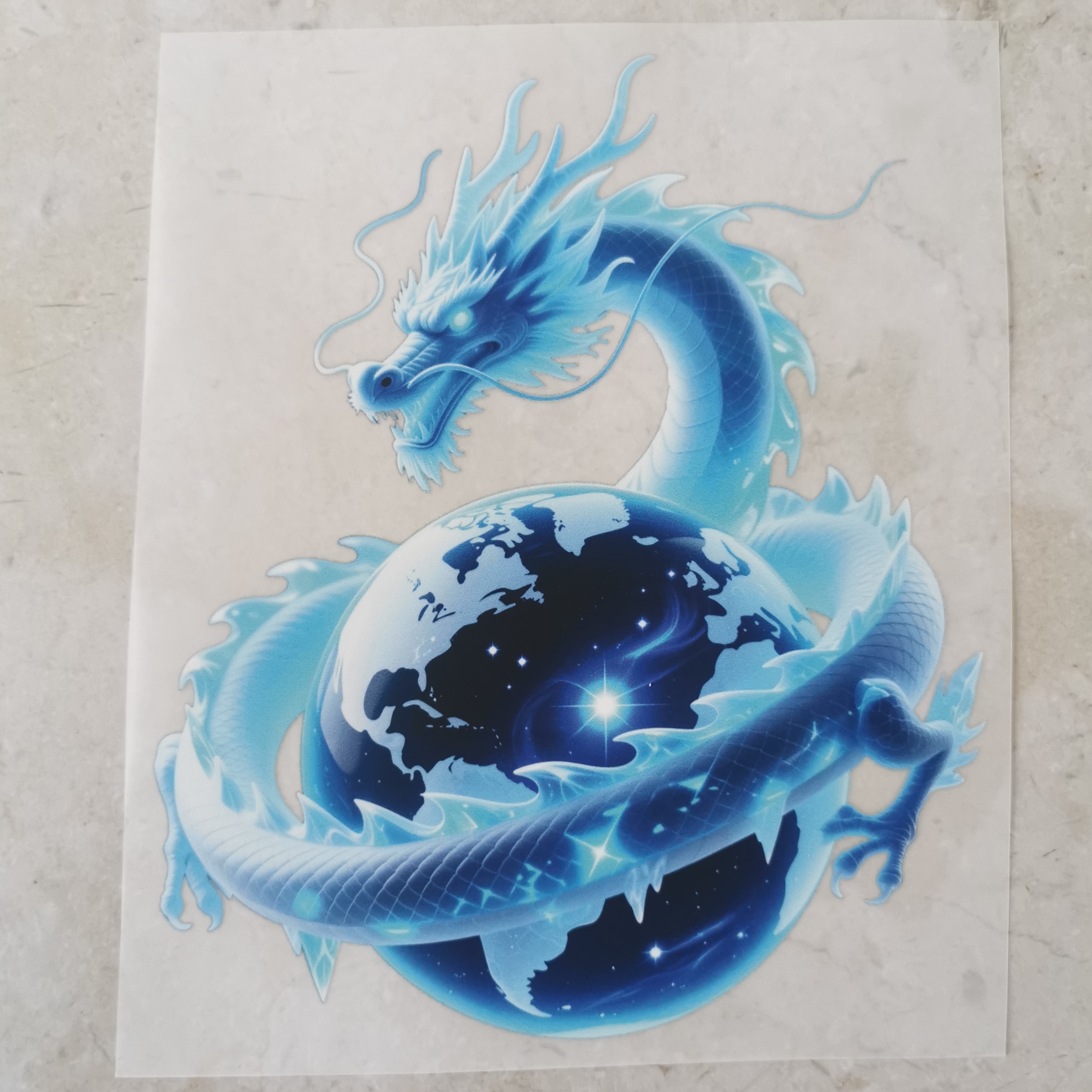 Bügelbild hellblauer Drache Erde