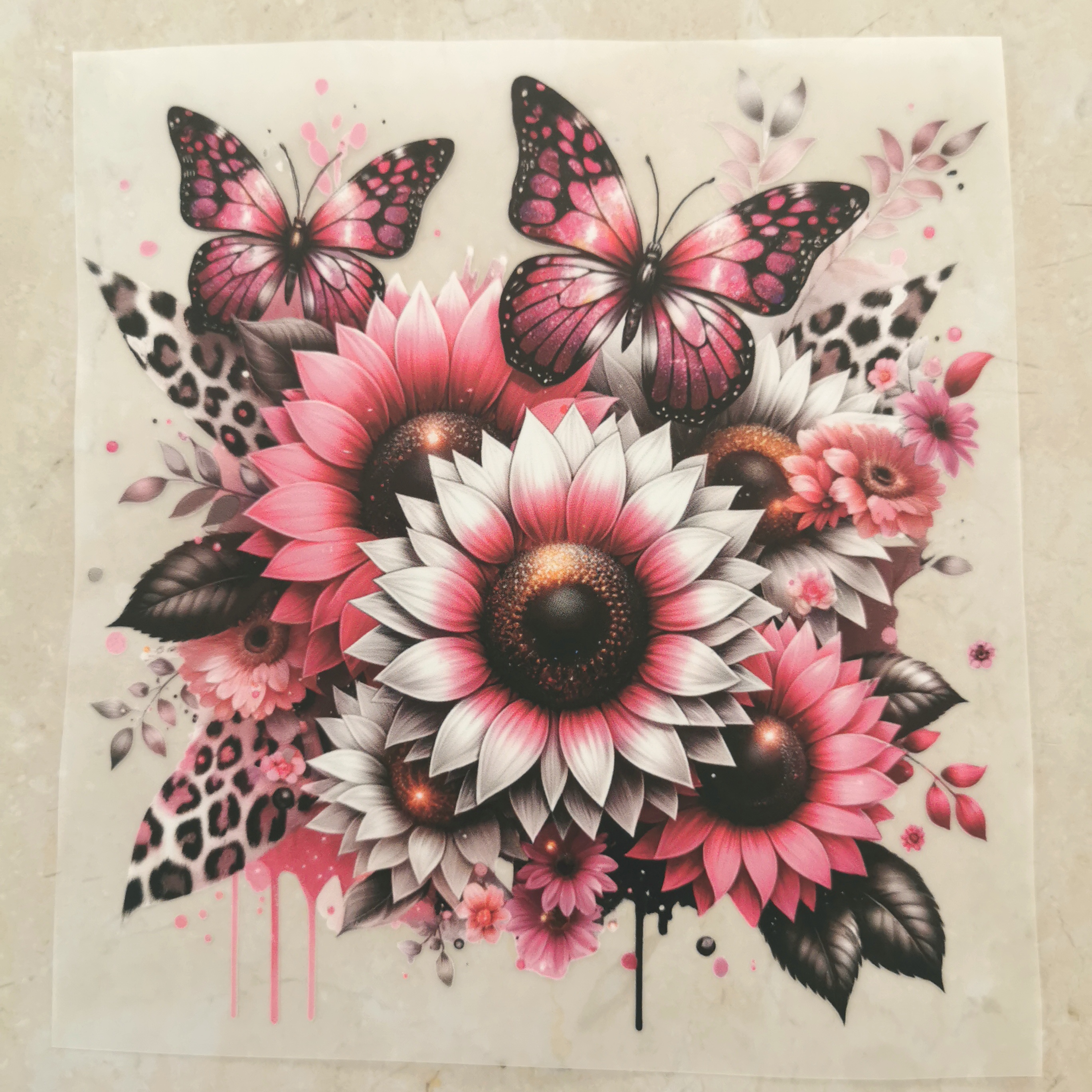 Preview: Bügelbild Leo-Sonnenblumen rosa