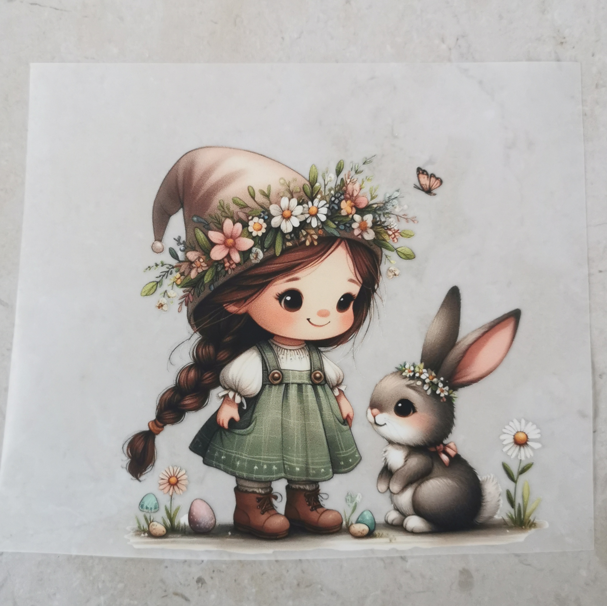 Bügelbild Mädchen mit Hase Hut
