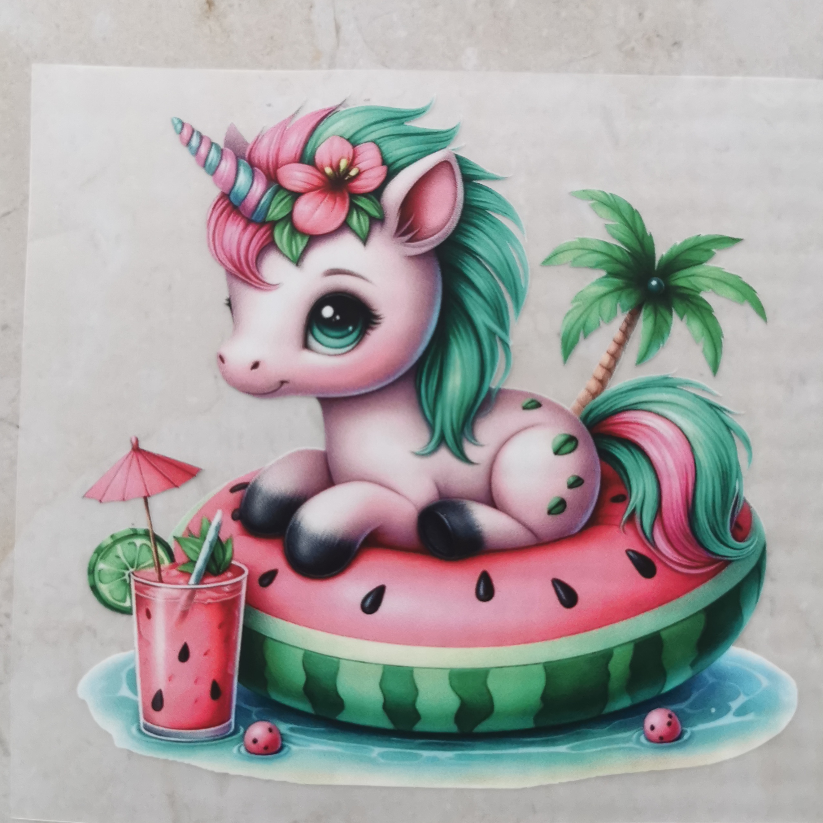 Bügelbild Meloneneinhorn auf Melonenschwimmring