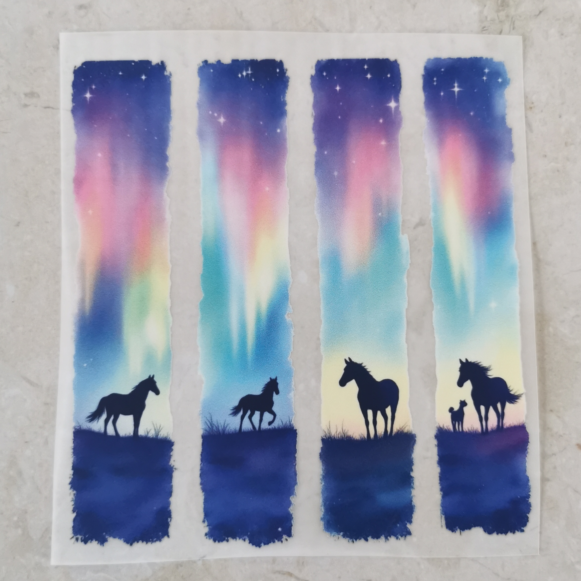 Bügelbild Pferdesilhouetten Polarlichter hell