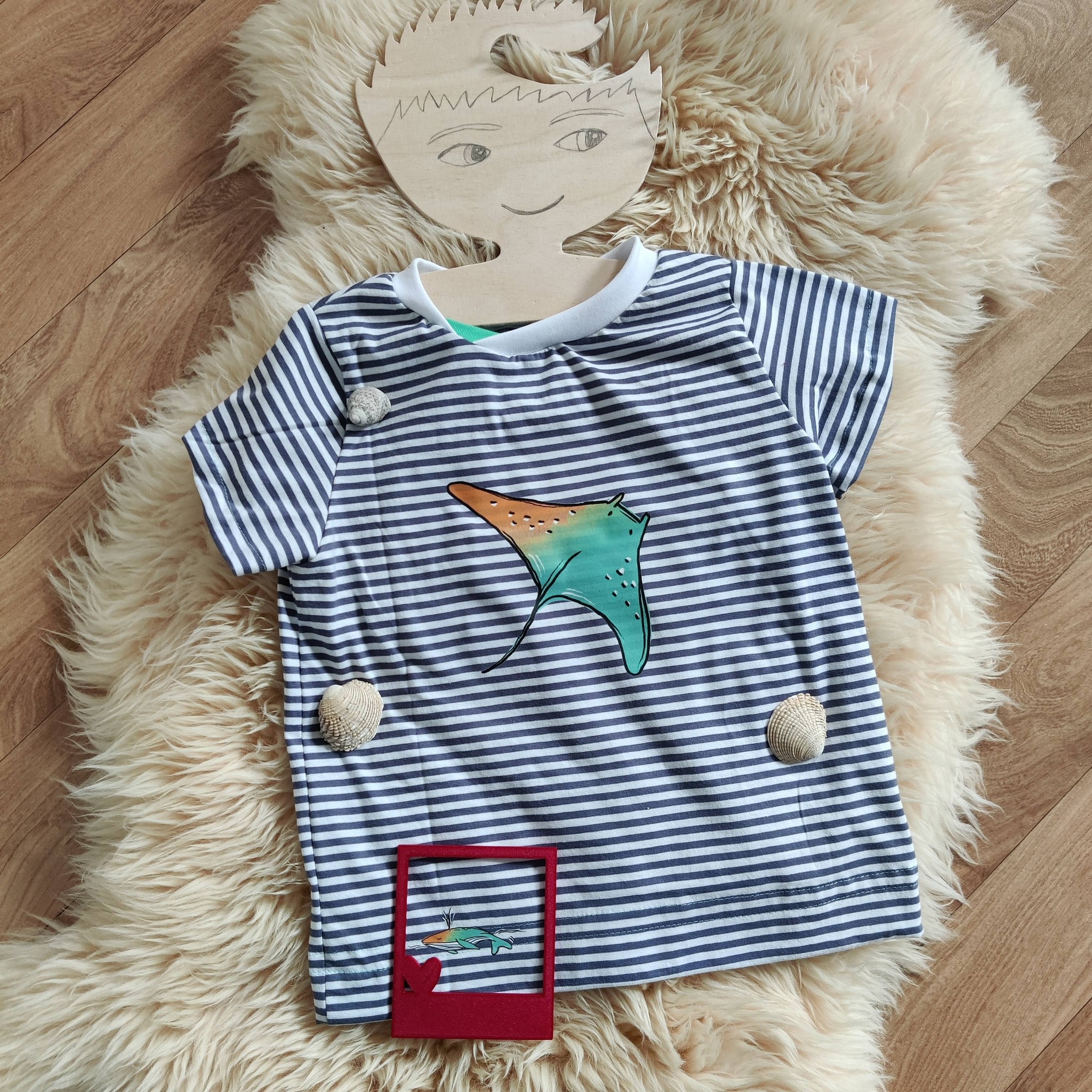 Bügelbild Rochen orange-türkis