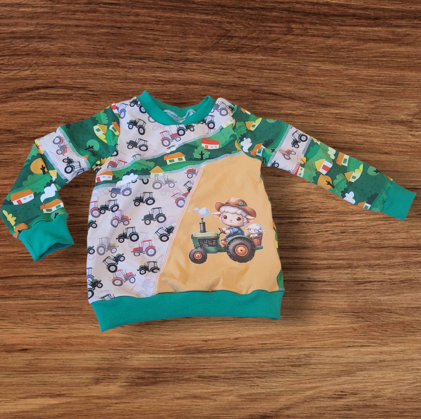 Bügelbild Schaf Traktorfahrer