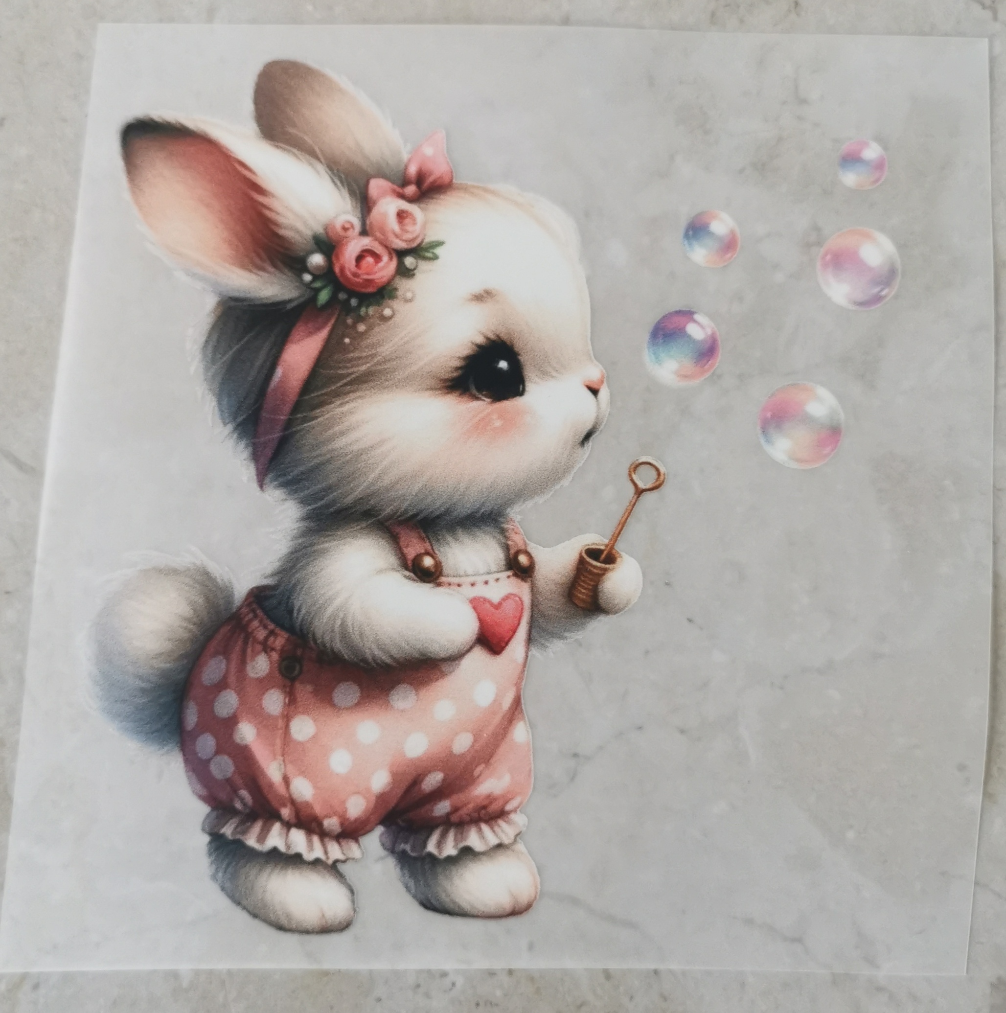 Bügelbild Schleifenhase Seifenblasen