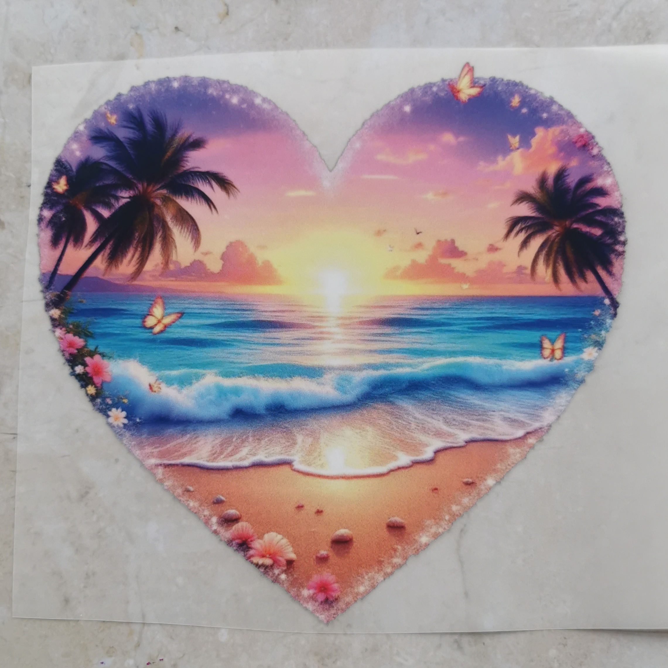 Preview: Bügelbild Strandherz Sonnenuntergang dunkel