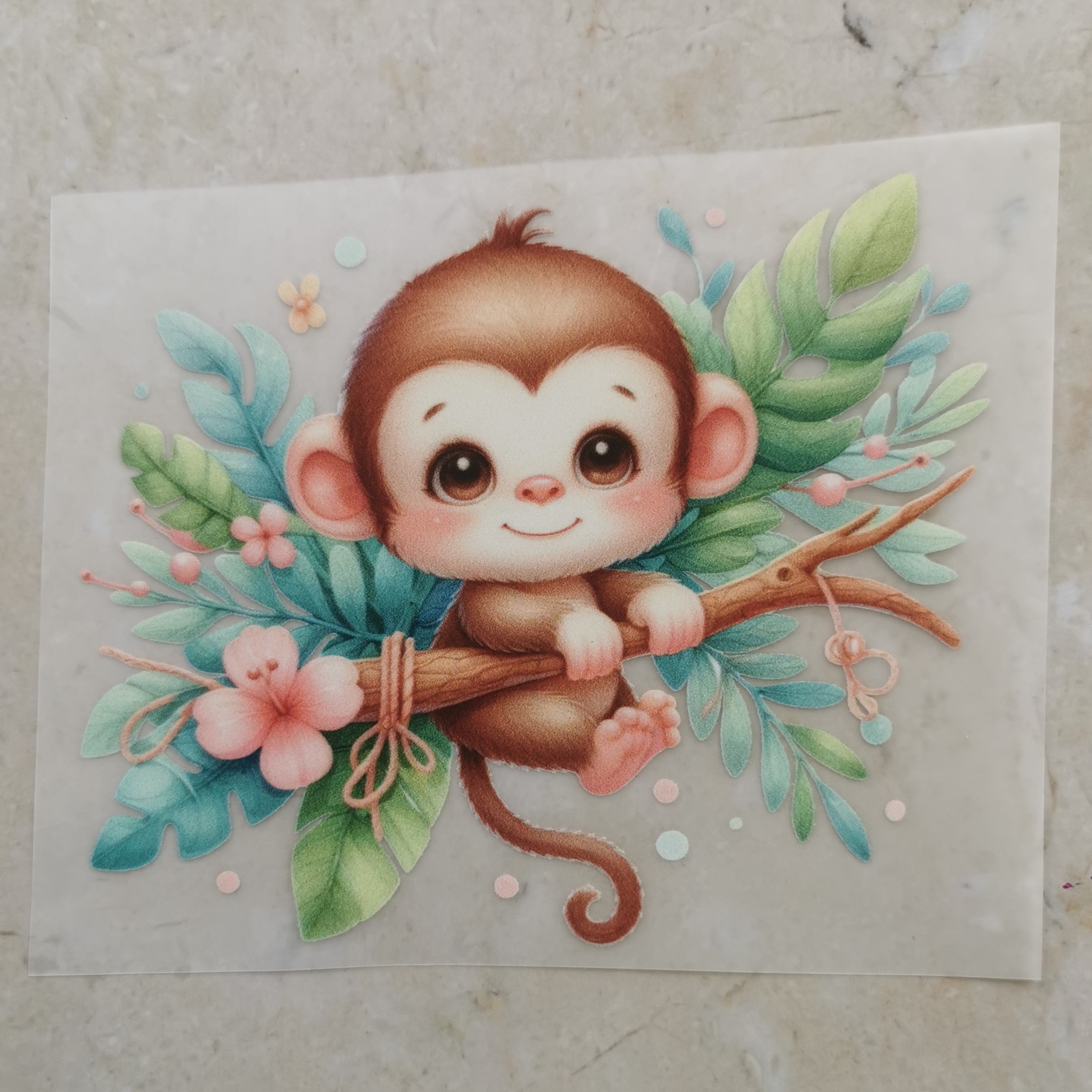 Preview: Bügelbild süße Safaritiere Affe Ast