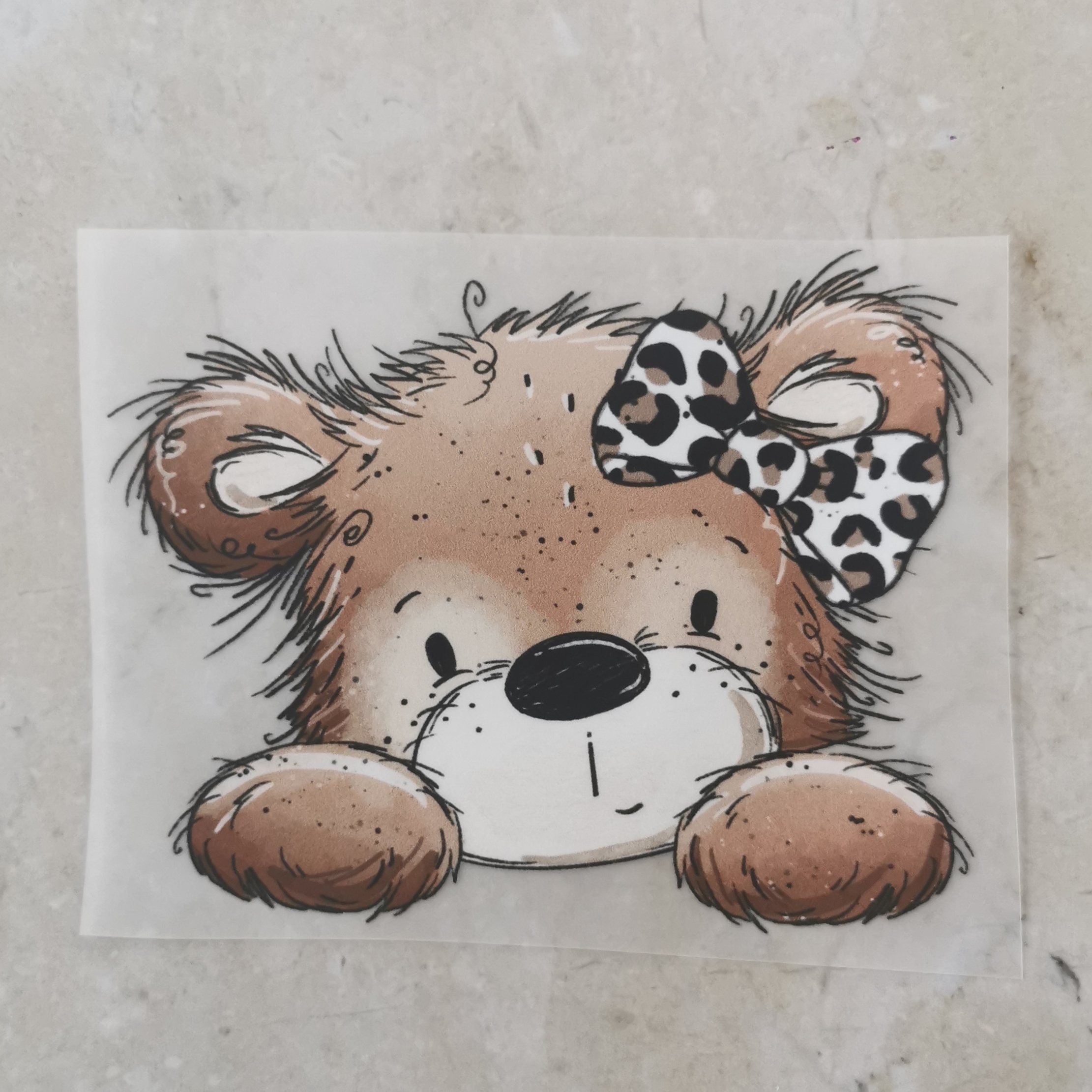Preview: Bügelbild süßer Bärenkopf mit Schleife