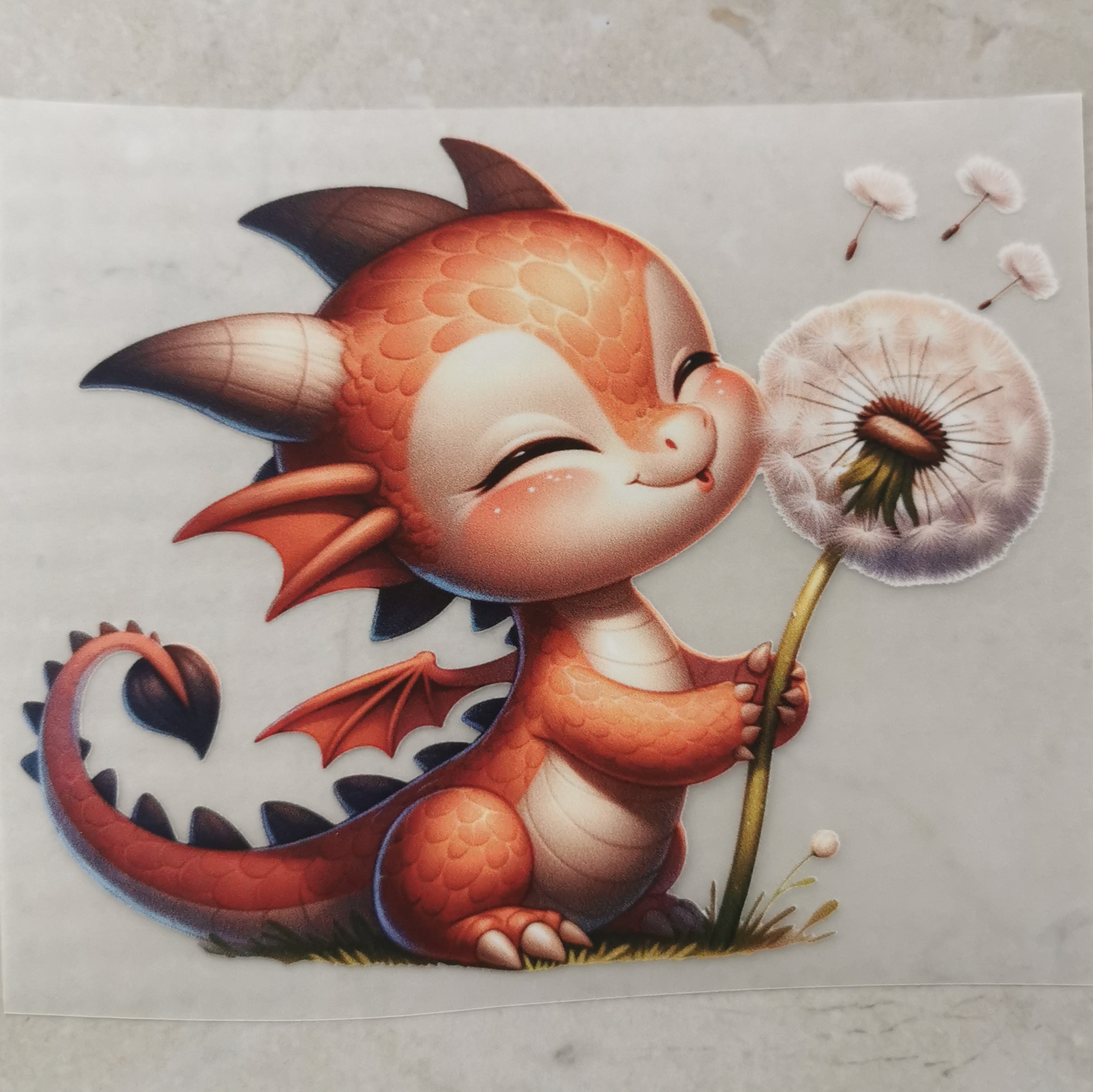 Bügelbild süßer Drache Pusteblume