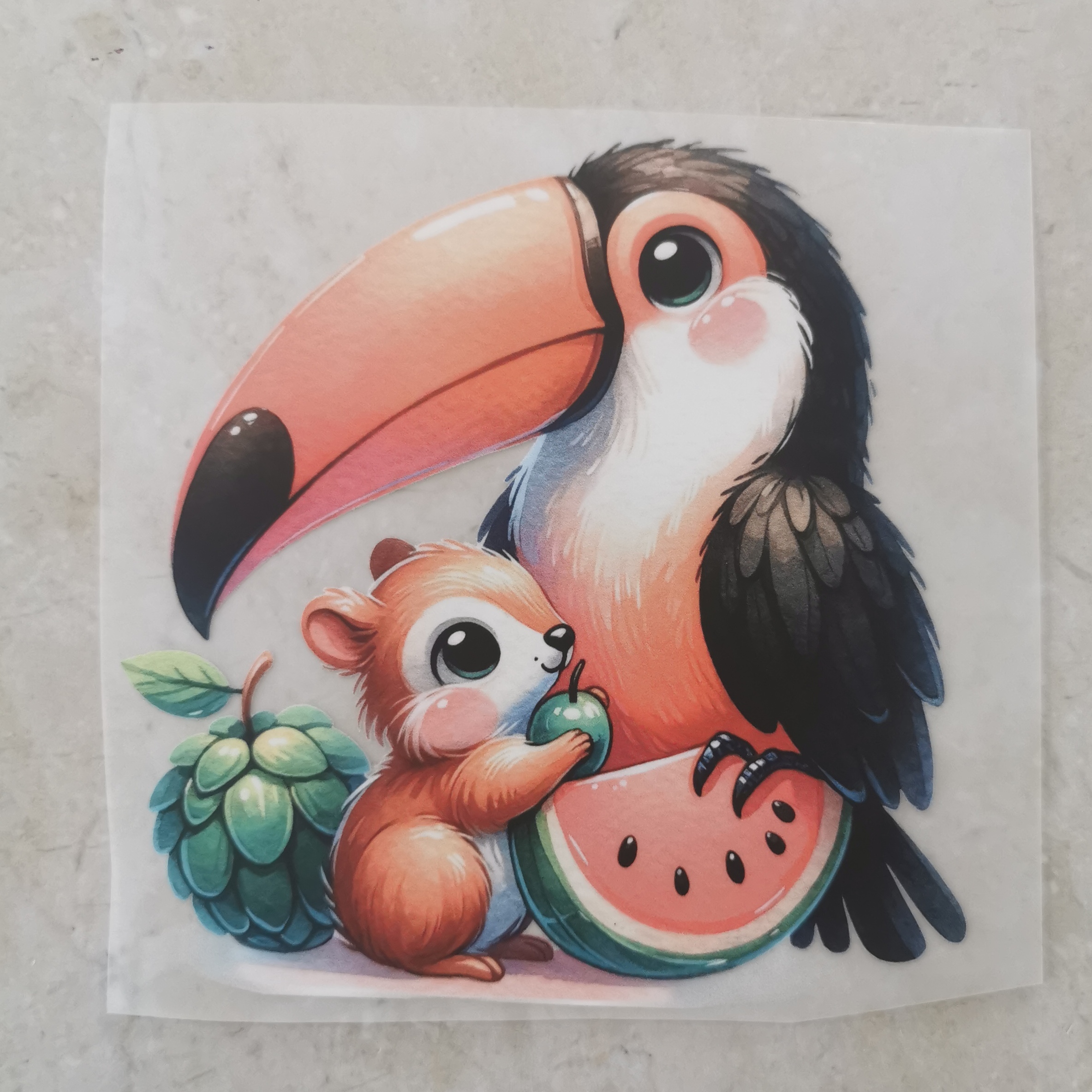 Bügelbild süßer Tukan Melone